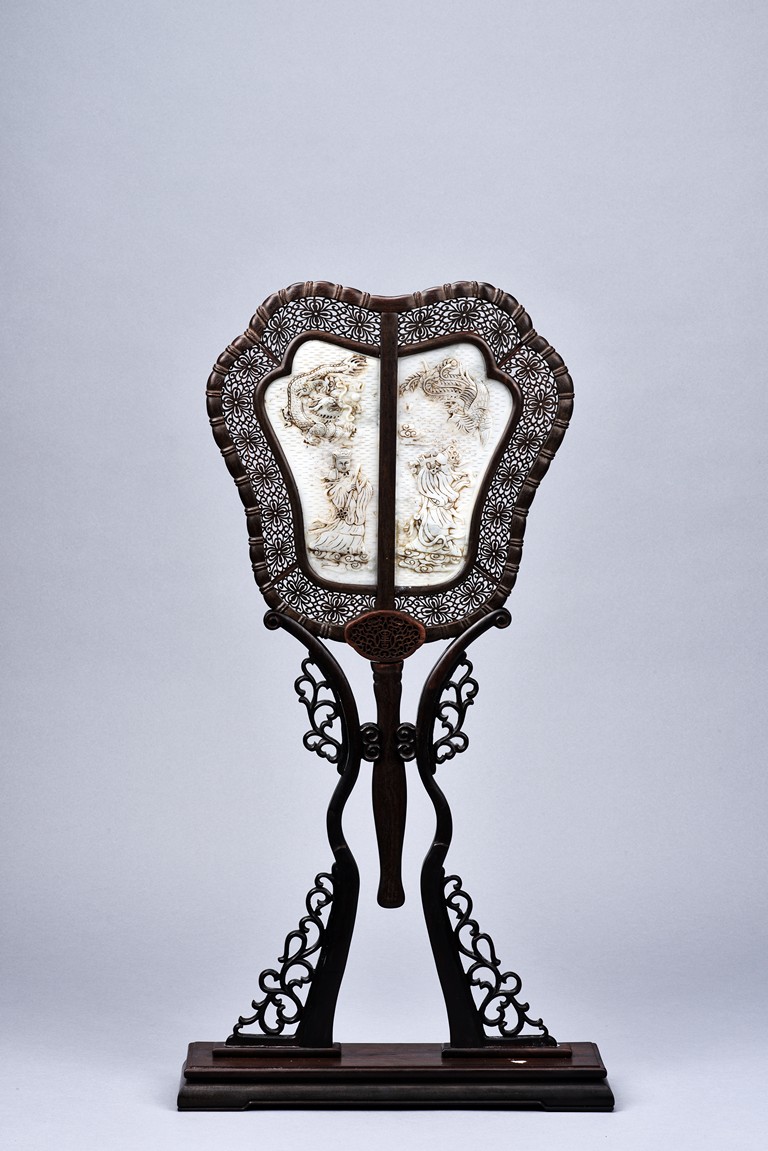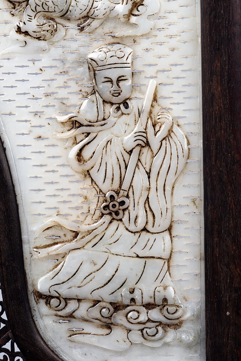 AN RETICULATED JADE FAN TABLE SCREEN 玉雕鏤空扇面