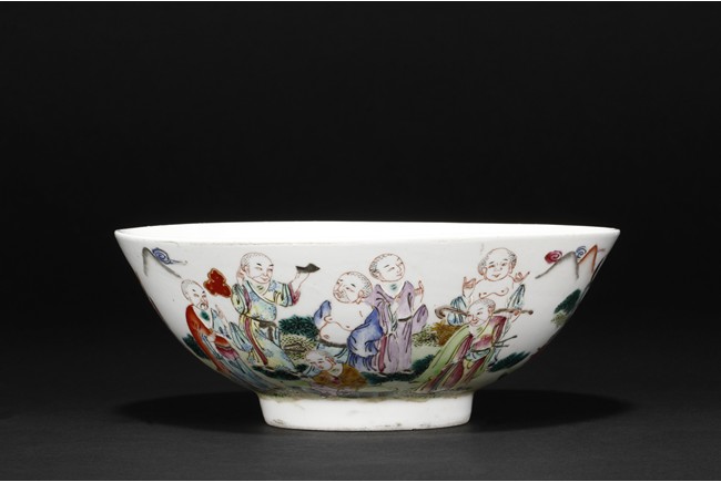 A FAMILLE ROSE 'EIGHTEEN LUOHAN' BOWL 民國 五彩十八羅漢碗