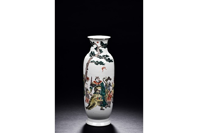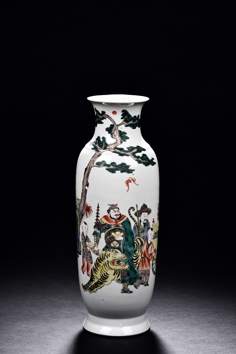 A WUCAI 'WU SONG' FIGURES VASE 多彩武鬆打虎瓶