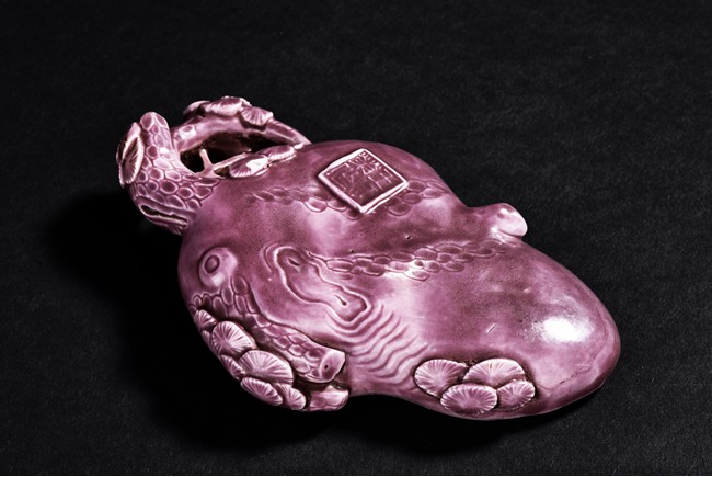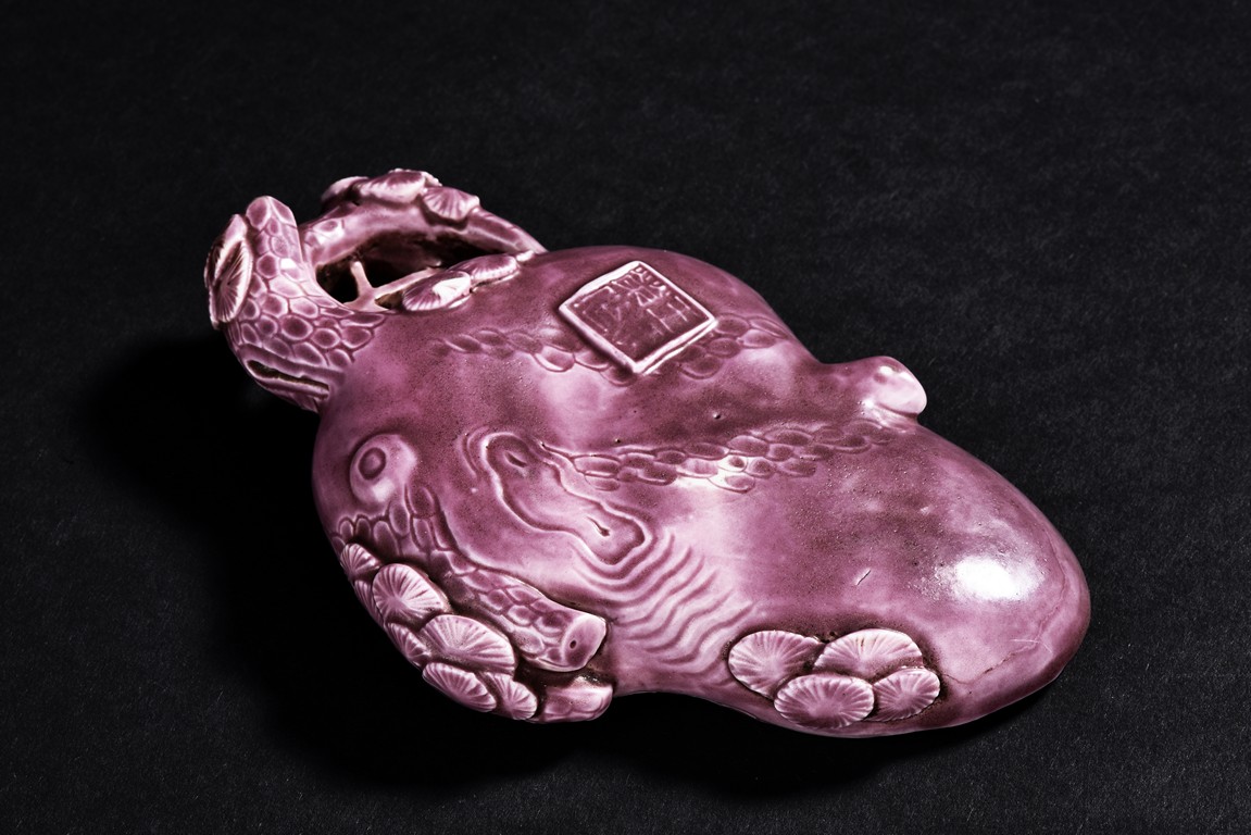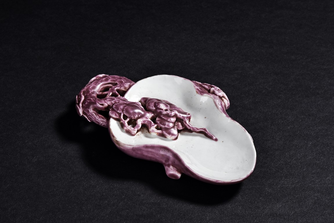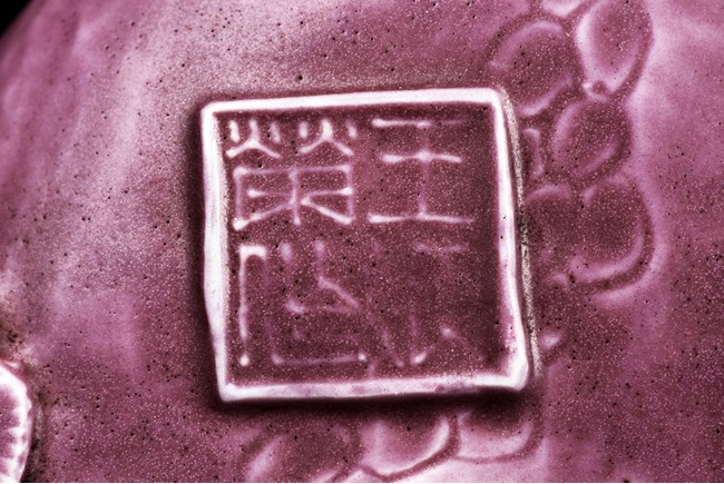 A PURPLE GLAZED BRUSH WASHER WITH MARK 王炳榮造款筆舔