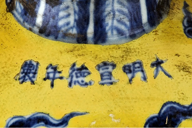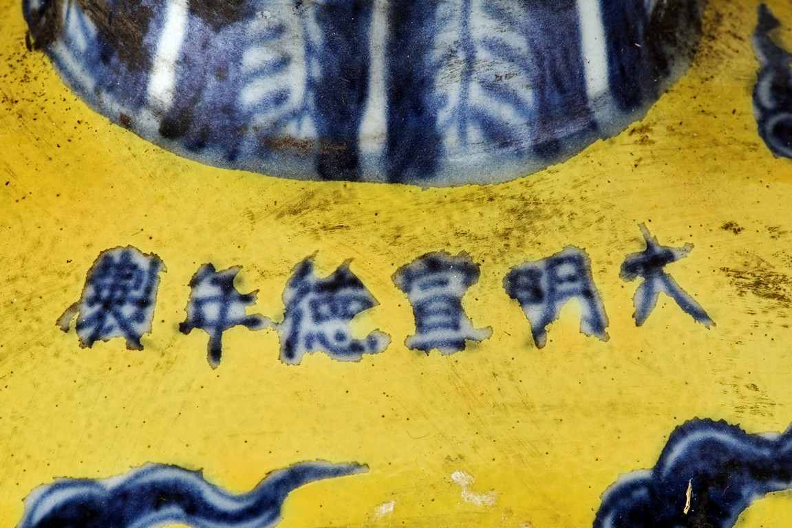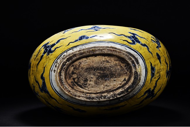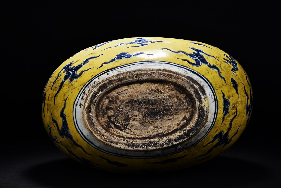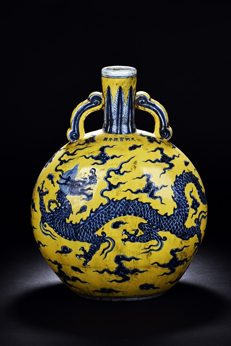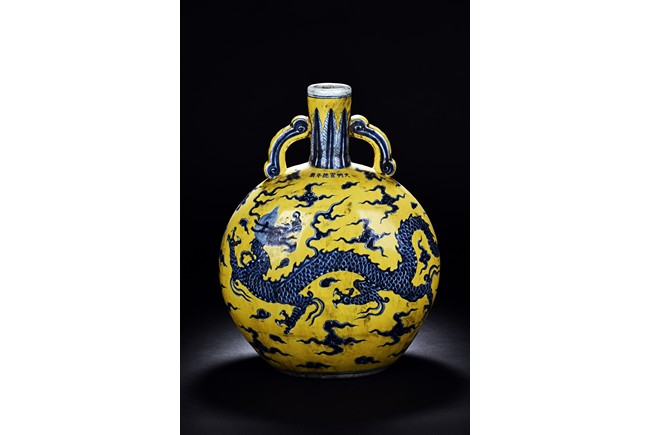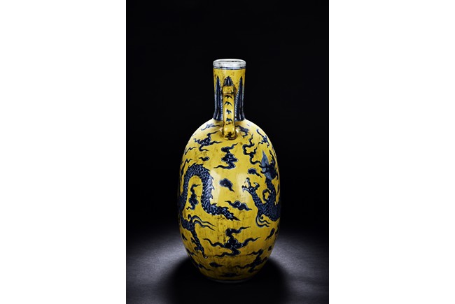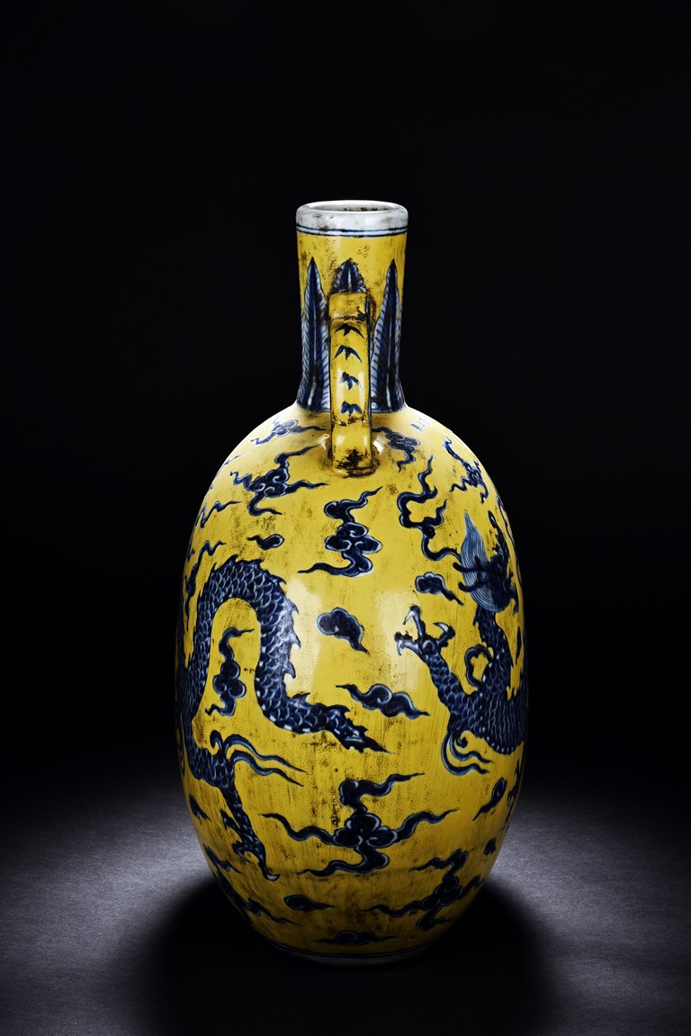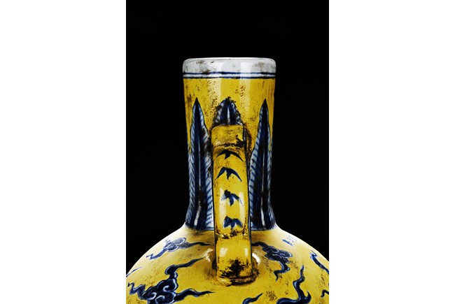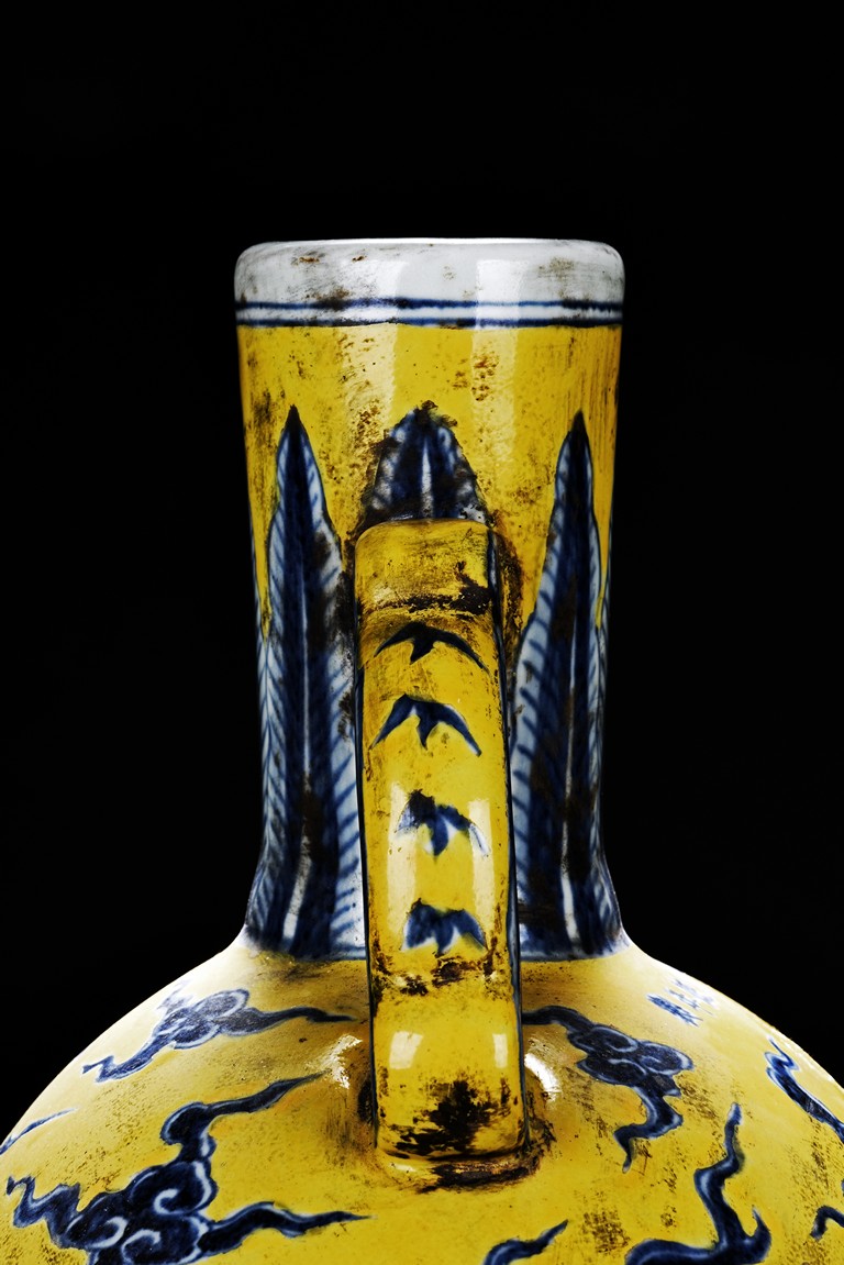 A YELLOW GLAZED VASE WITH DRAGON DESIGN 黃釉龍瓶