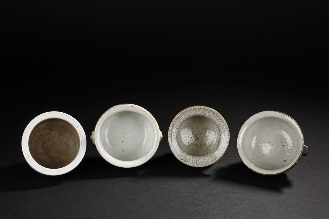 A SET OF 4 CERAMIC CENSERS    清 青花香爐、瓷香爐一組