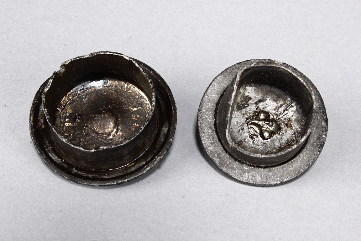 Of octagonal shape, one is painted with erotic scenes in panels; the other painted with historical scenes; the bottom bears a ten characer mark.