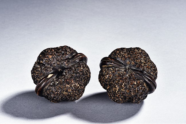 A PAIR OF YIXING WALNUTS 紫砂核桃一對