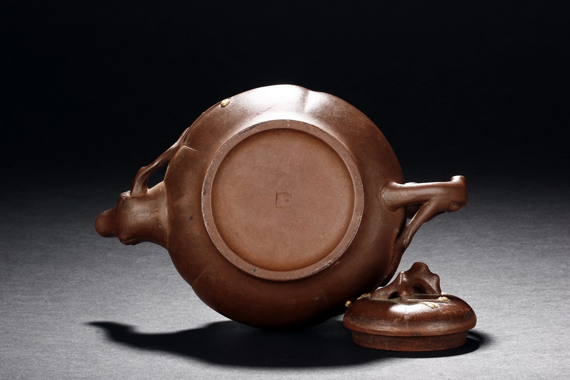 A YIXING ZISHA PLUM TEAPOT 中國宜興款 紫砂梅花枝幹壺