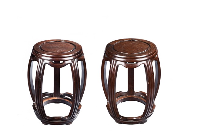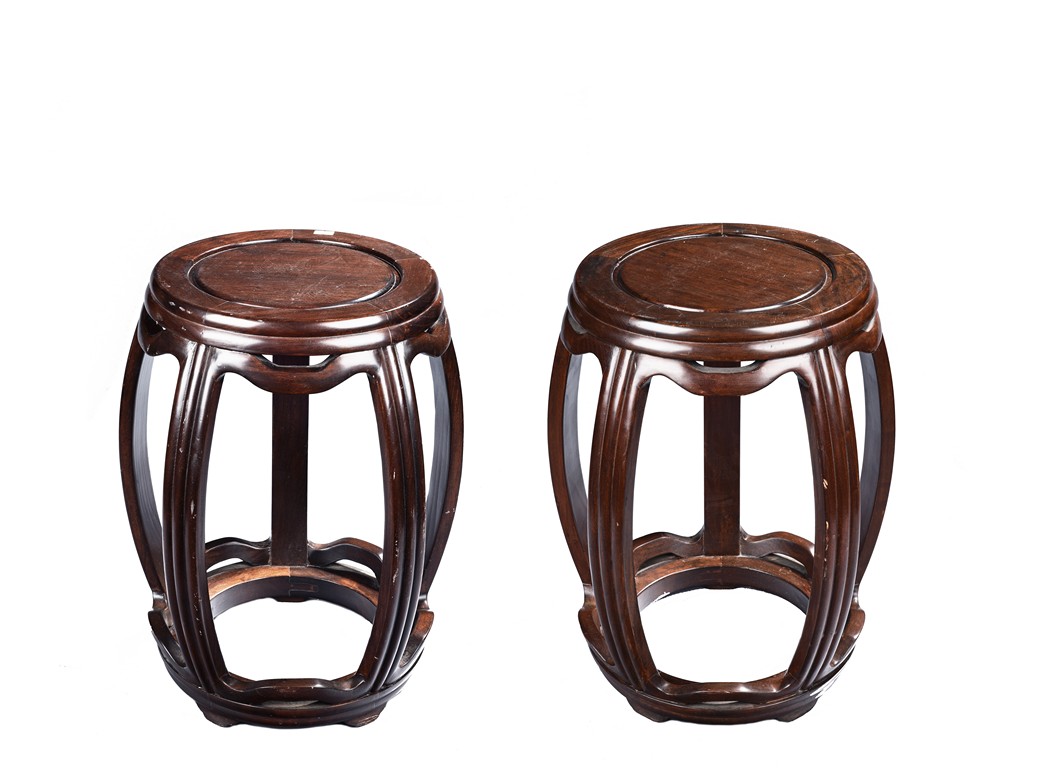 A PAIR OF HARDWOOD DRUM STOOLS 硬木圓凳一對