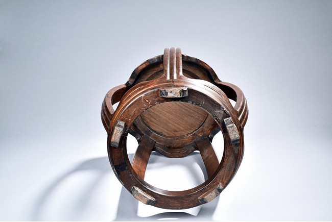 Of drum shape and circular cross section, each with alternating openwork panels.