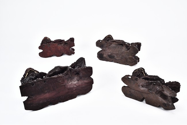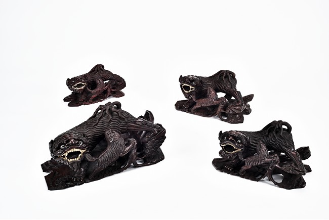 A group of four wood carved qilin