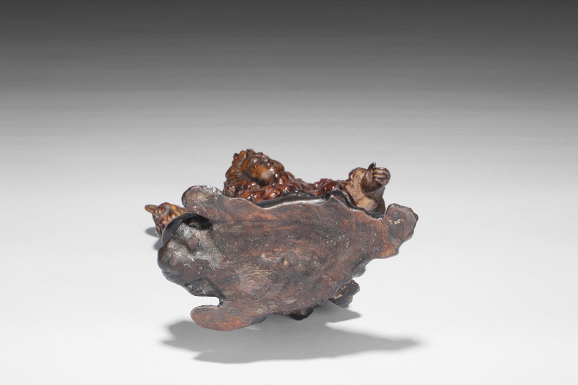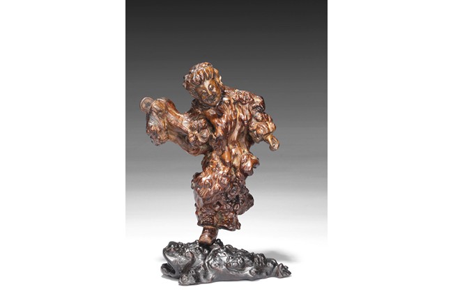 A ROOT CARVING OF LIU HAI AND HIS GOLDEN FROG    民國 黃楊木根雕劉海戲金蟾
