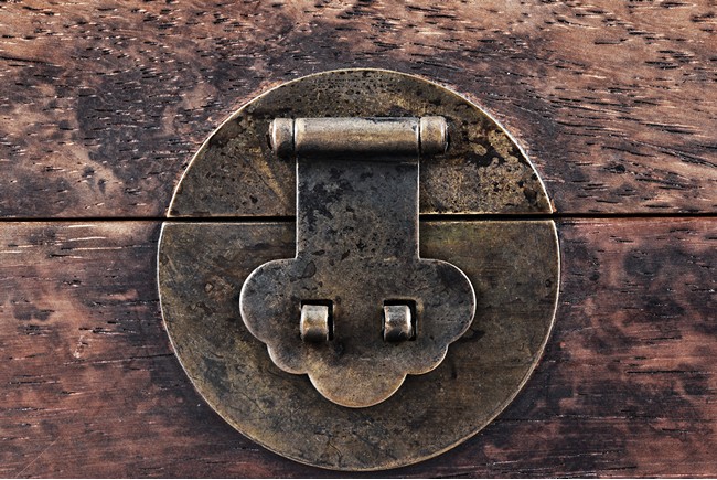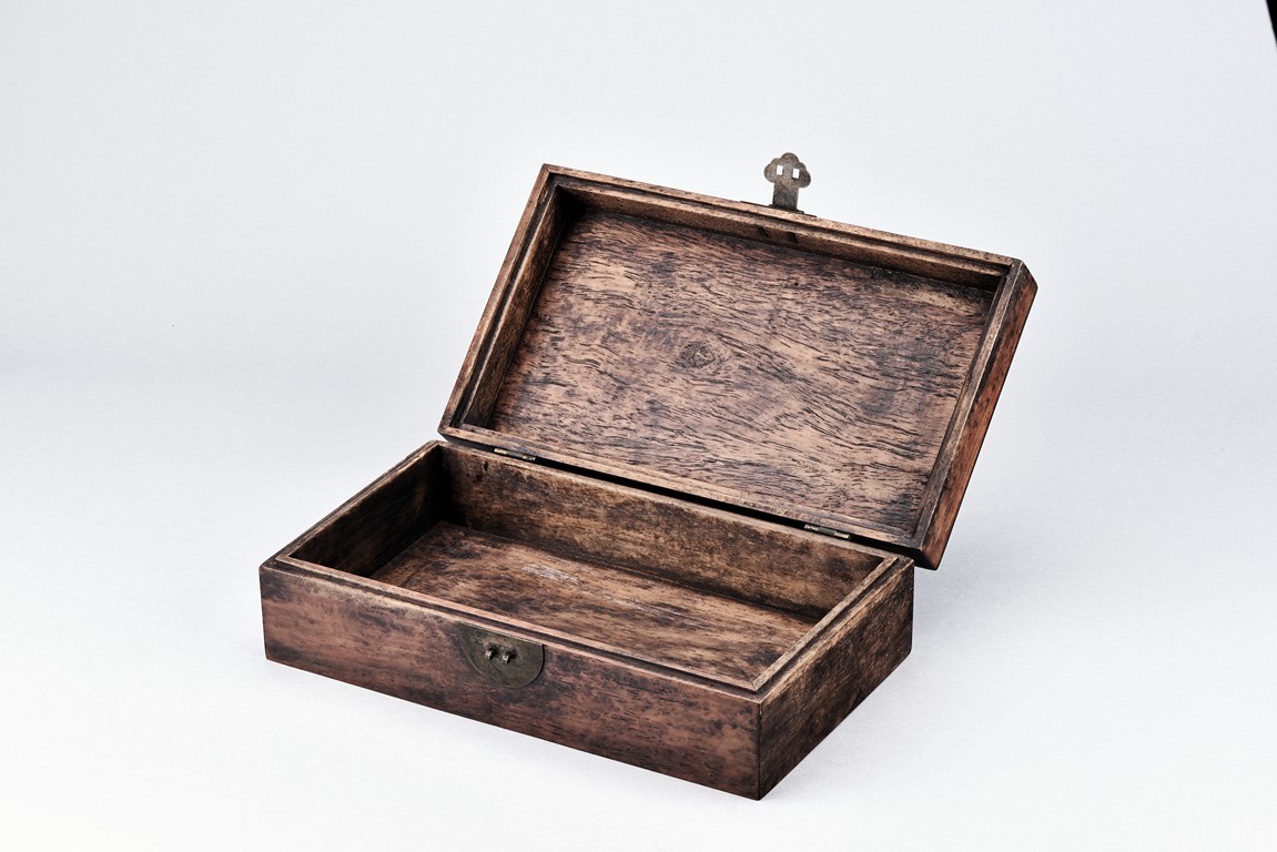 Of rectangular shape, the top with ruyi shaped corner mount, the front fitted with lockplate and ruyi shaped hasp. Republic period.