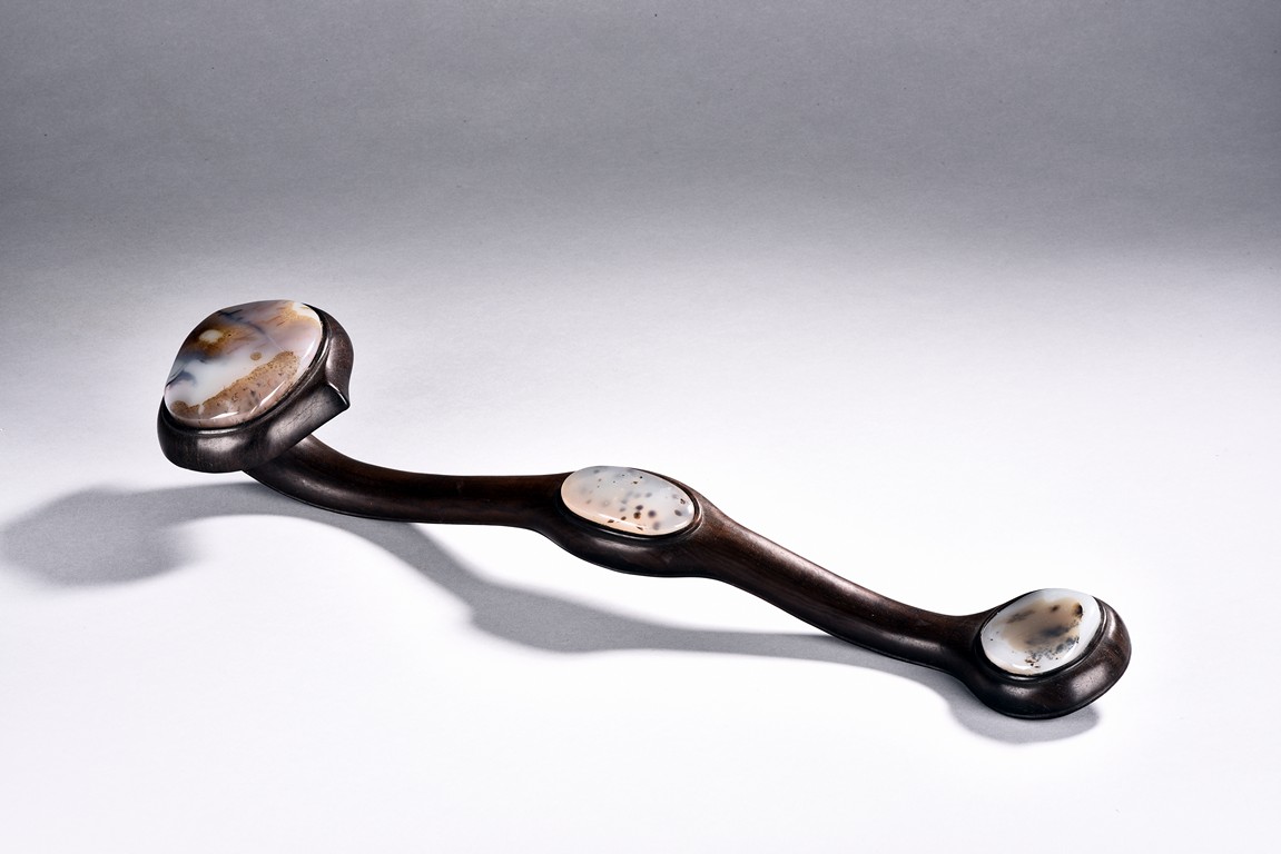 AN AGATE INSET RUYI SCEPTER 硬木崁瑪瑙如意