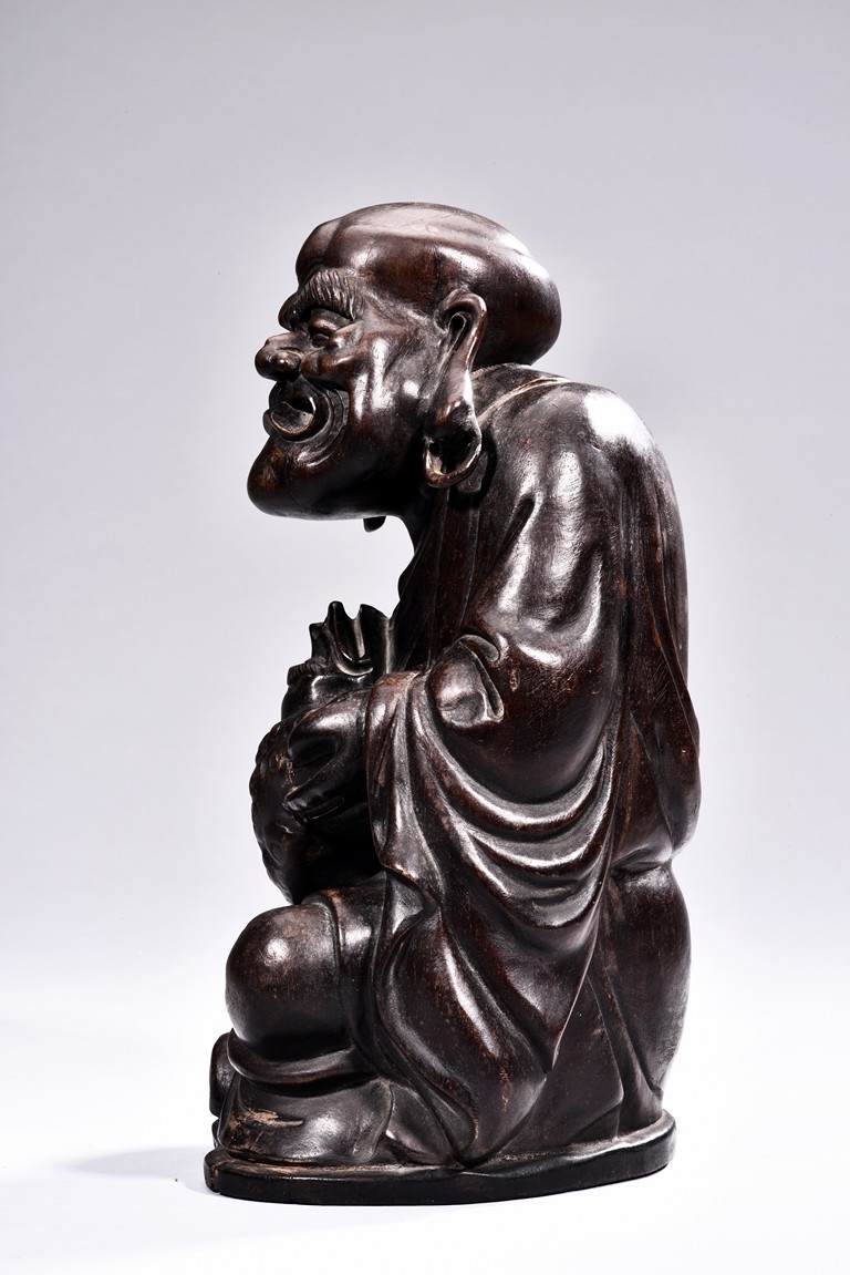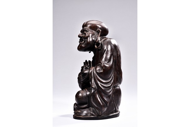 A HARDWOOD FIGURE OF LIUHAI AND TOAD 硬木雕劉海戲金蟾