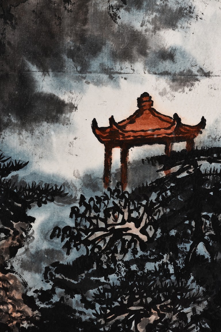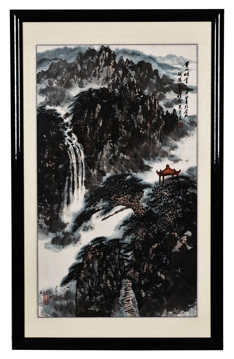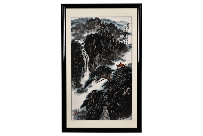 A COLOR AND INK ON PAPER 'LANDSCAPE' PAINTING 山水畫 設色紙本 鏡框