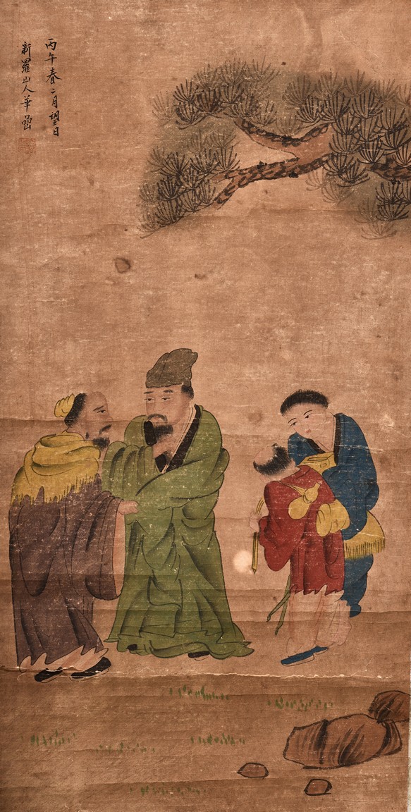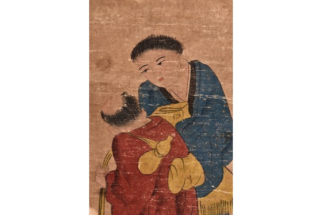 A COLOR AND INK ON PAPER FIGURES PAINTING 老翁童子畫一副