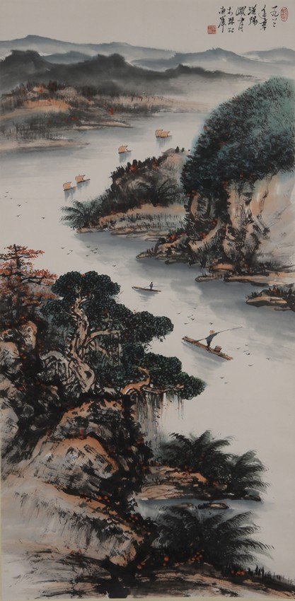 GUAN SHANYUE: A COLOR AND INK LANDSCAPE PAINTING 關山月款山水畫