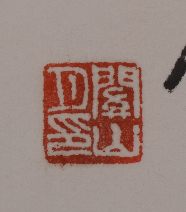 Ink and color on paper. hanging scroll. Two seal marks and inscription.