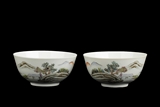 汪永太作 粉彩山水碗一對