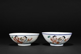 A PAIR OF FAMILLE ROSE HEHE ERXIAN BOWLS