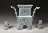 A SET OF BLUE AND WHITE CENSER