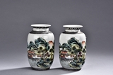 山水瓶 一對