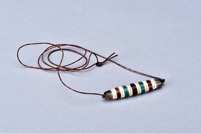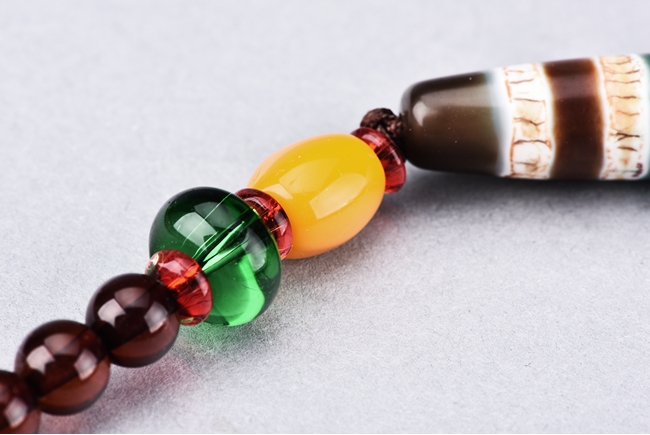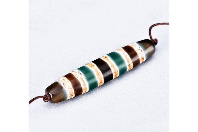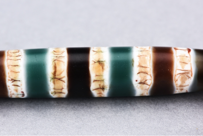 A VERY RARE FOUR-COLORED DZI BEAD 清早期 四色天珠