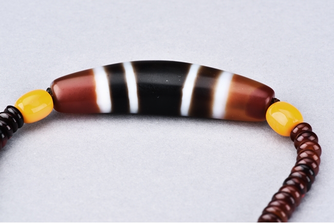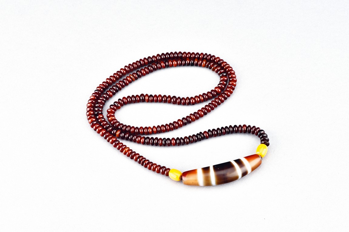 A TRI-COLOR CHUNG DZI BEAD NECKLACE    三色線珠配蜜蠟項鏈