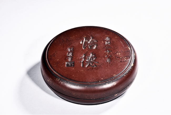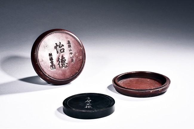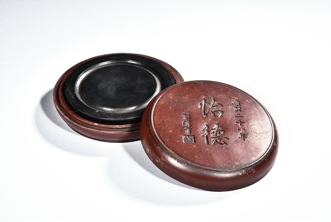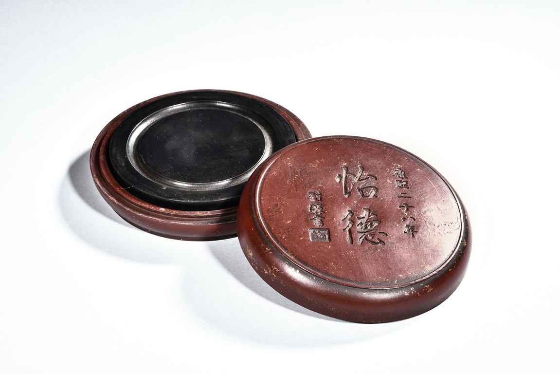 A CIRCULAR INKSTONE WITH CASE    康熙二十六年 怡德圓形硯