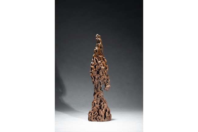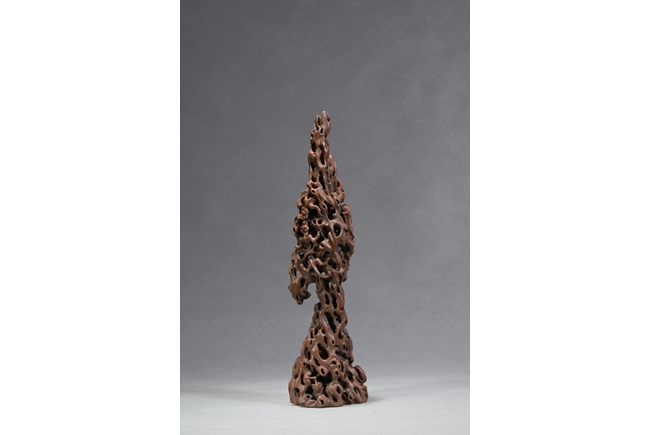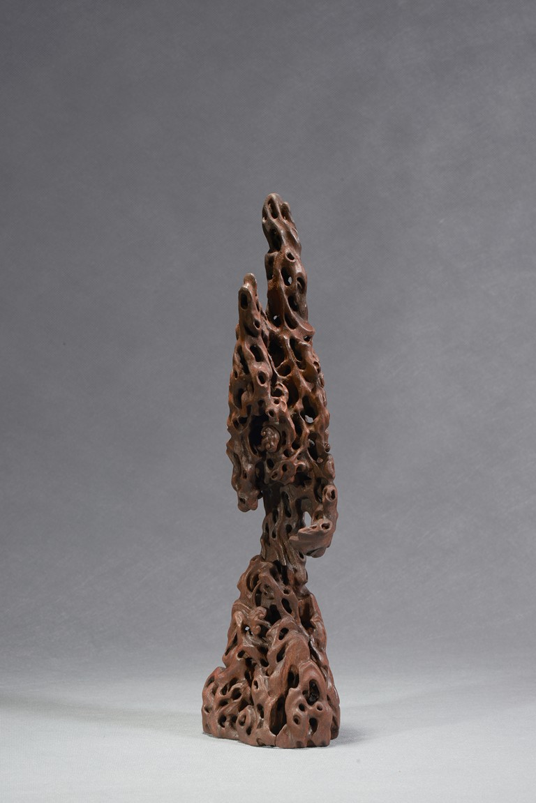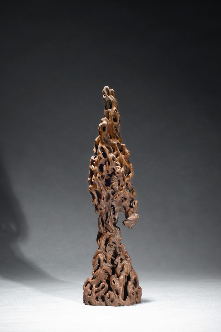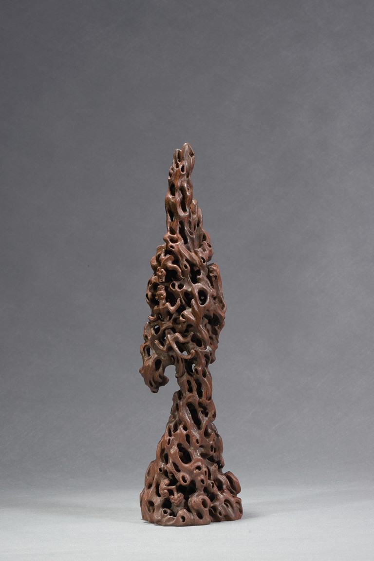 Of upright vertical form, the boulder is suggestive of a scholar's rockwork, with irregular opennings in the style of rock crevices.Qing Dynasty period.