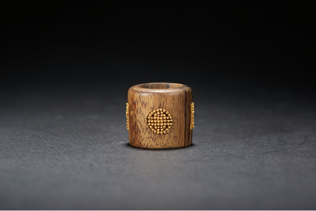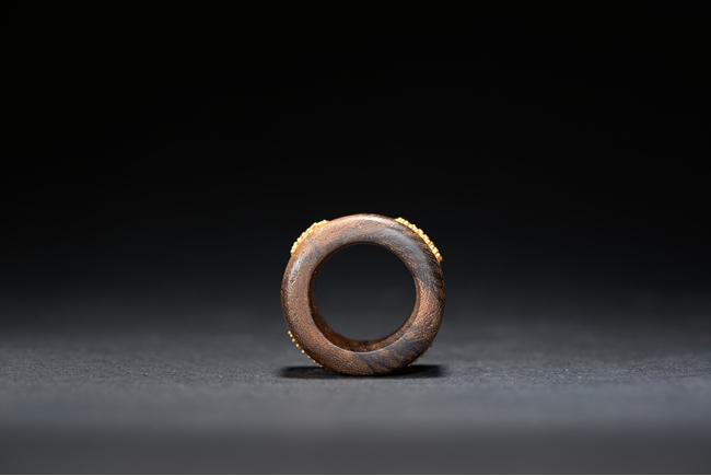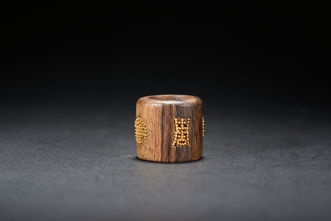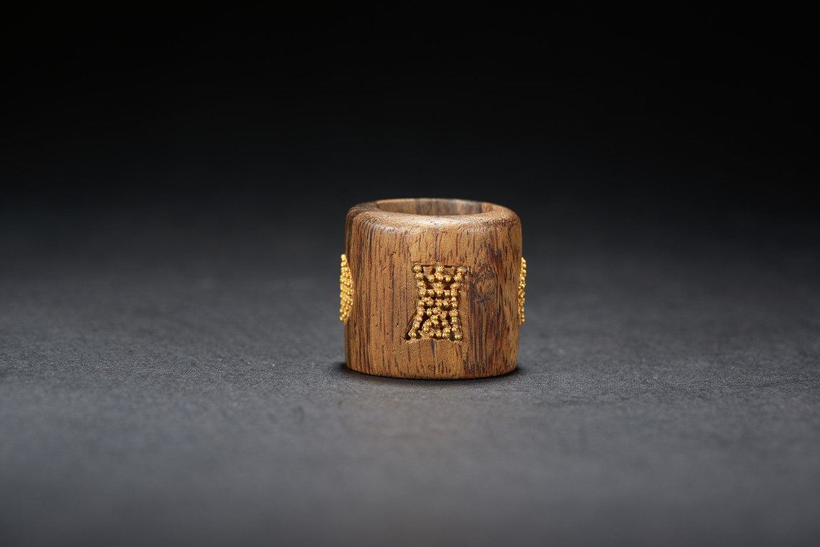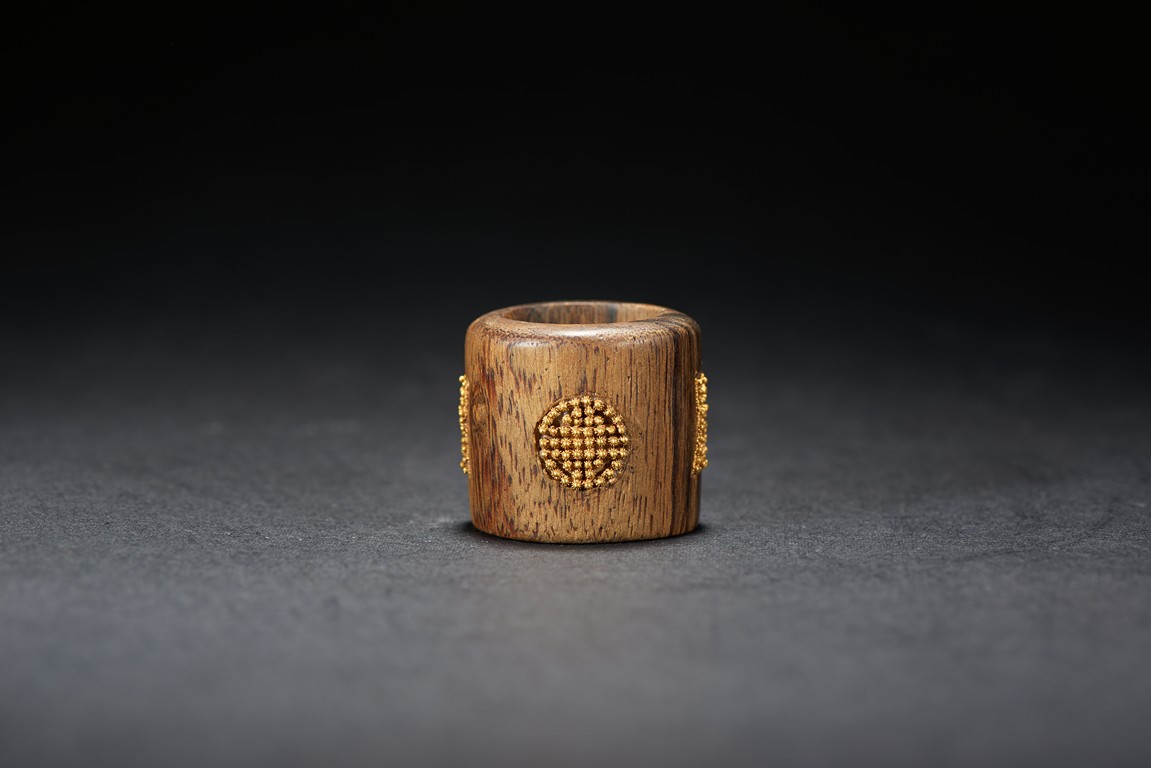 AN AGARWOOD 'GOLD' ARCHER'S RING 沉香鑲金粒扳指