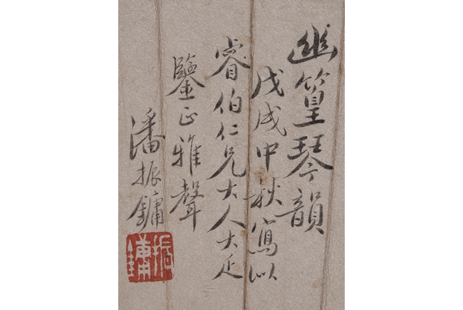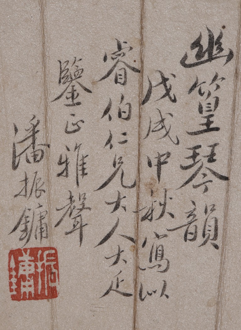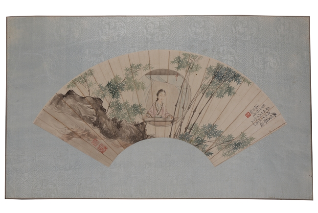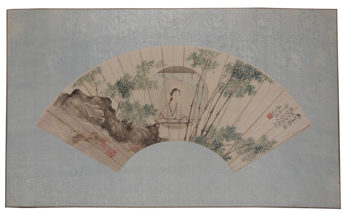 Color and ink on paper. Beauty. Fan painting. Inscribed, signed, and with one seal of the artist.