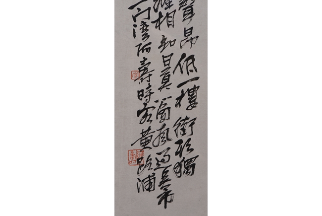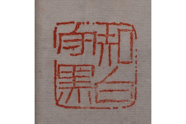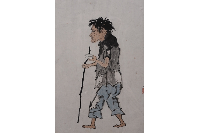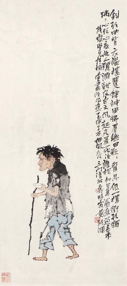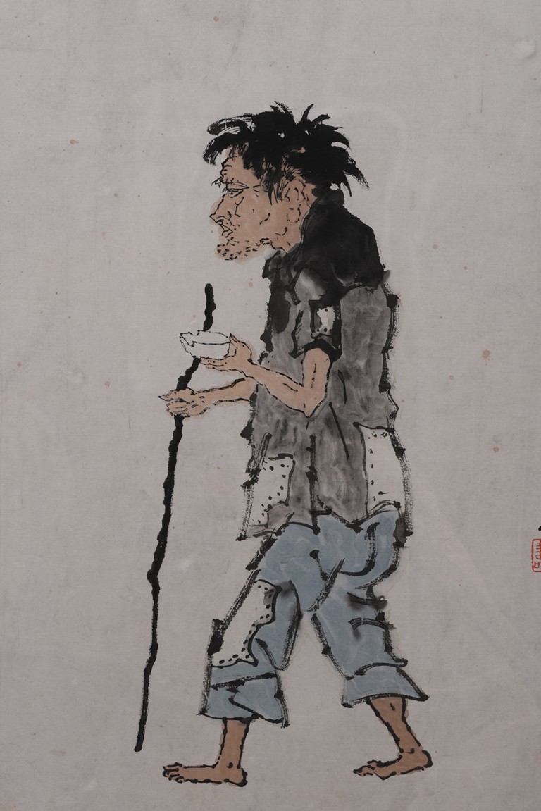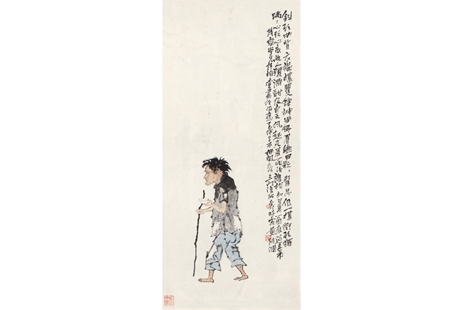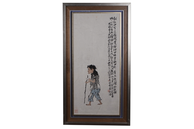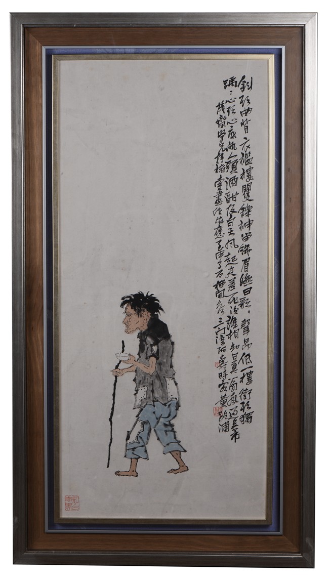 Color and ink on paper. Framed. 'Figure'. Inscribed, signed, and with three seals of the artist.