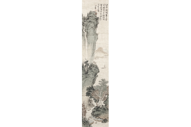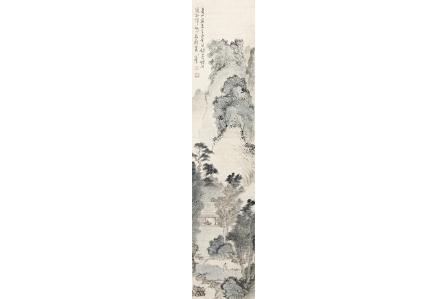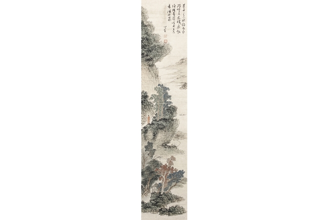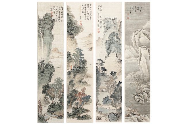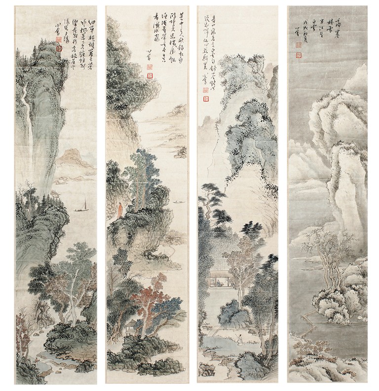 PU RU: A SET OF FOUR LANDSCAPE HANGING SCROLLS 溥儒 山水四屏 設色紙本