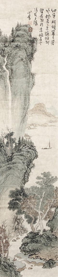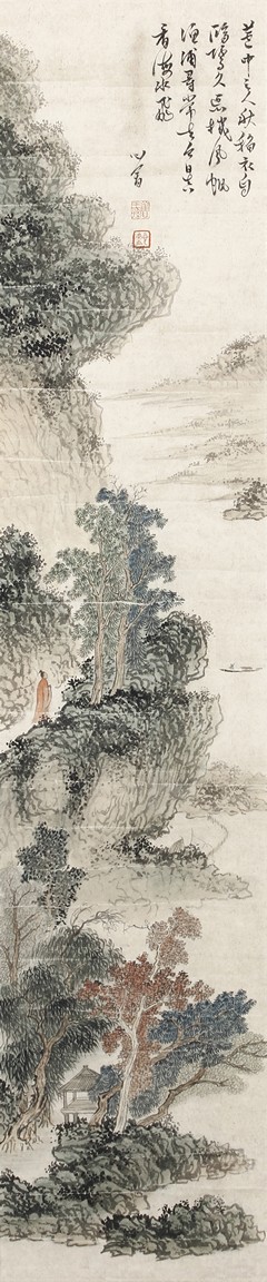 Color and ink on paper. Hanging scroll. Each inscribed, signed, and with two seals of the artist.