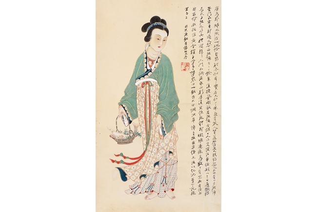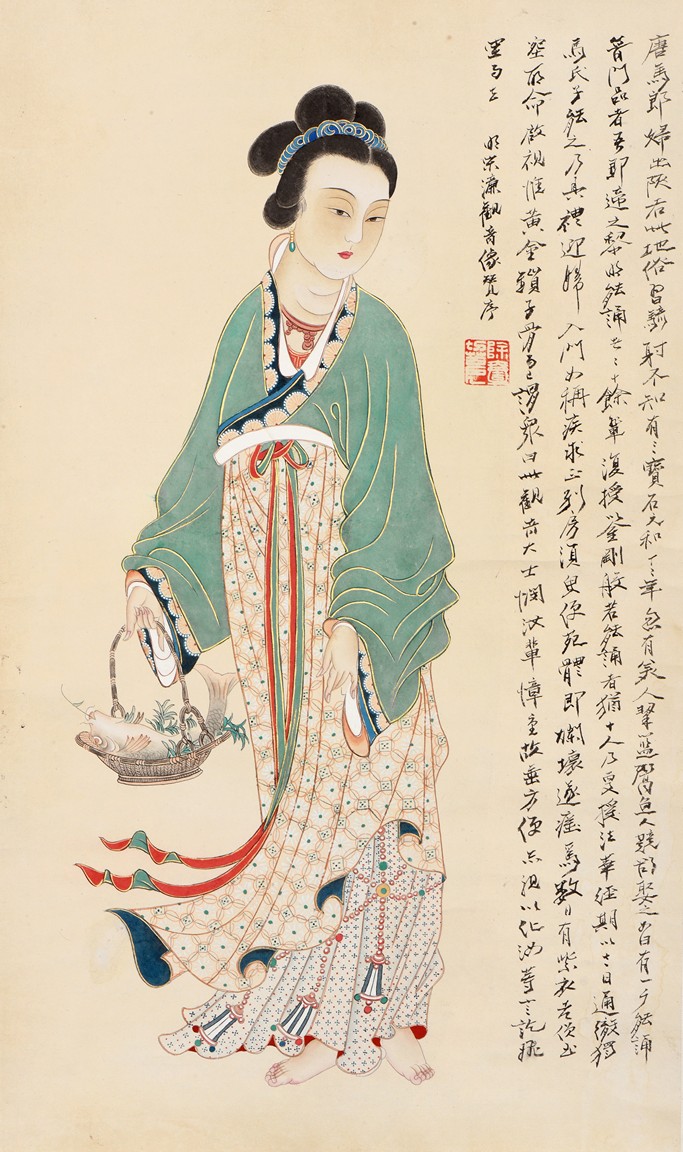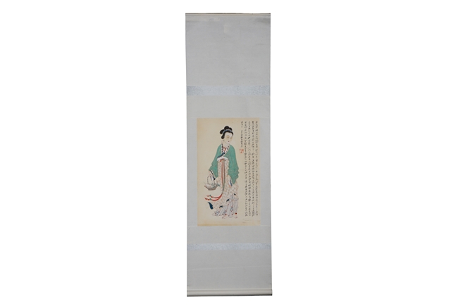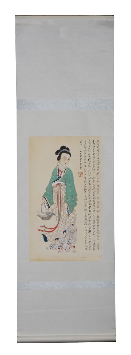 Guanyin. Ink and color on paper. Hanging scroll. Inscribed, signed, and with one seal of the artist. Attributed to Zhang Daqian.