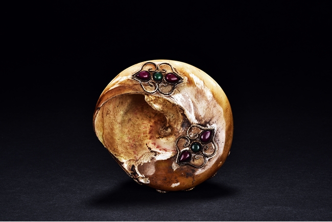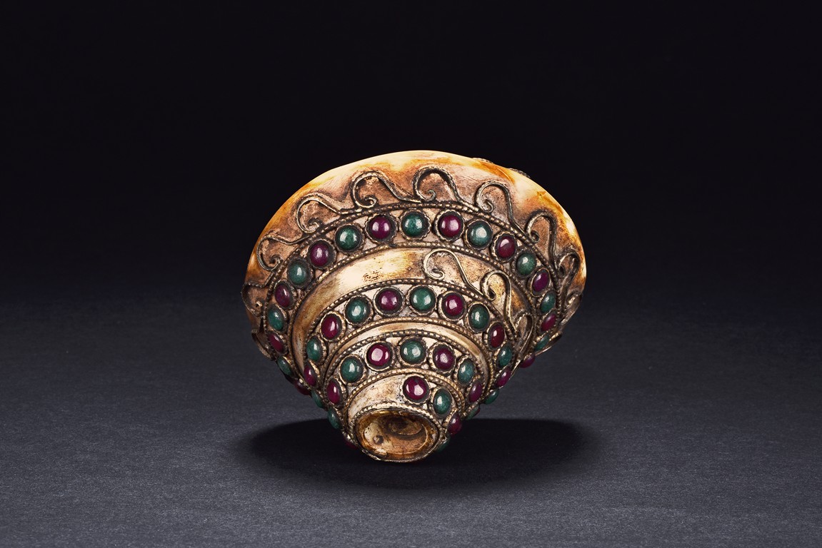 A BRONZE GEMS INLAID SHANKHA    銅嵌寶石法螺