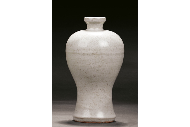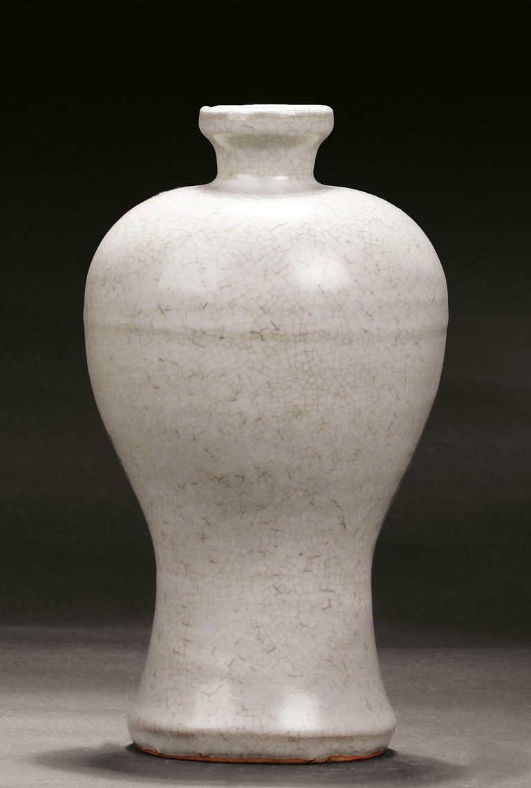 The body tapering from high rounded shoulder to the gently spreading foot, covered on the exterior with crackle patterns over white glaze, the bottom foot ring unglazed. Ming Dynasty period.