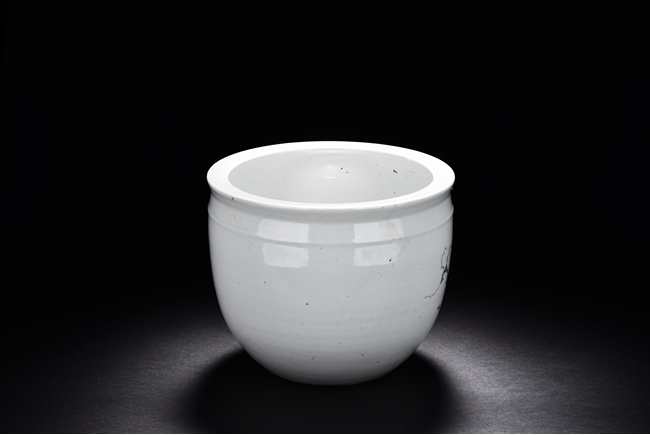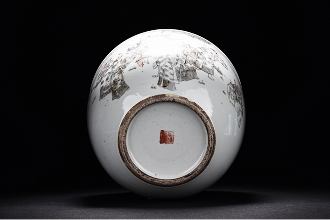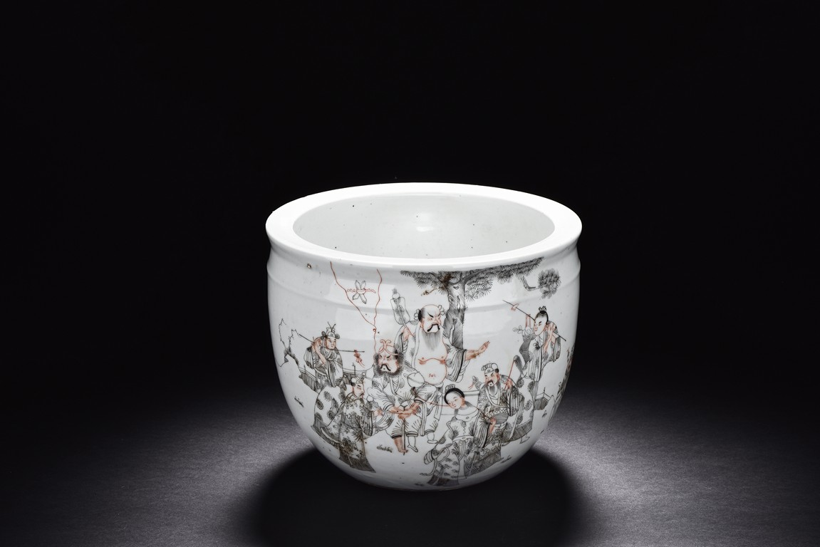A PROCELAIN WHITE GROUND 'EIGHT IMMORTAL' JAR    同治年制人物白瓷繪八仙花盆