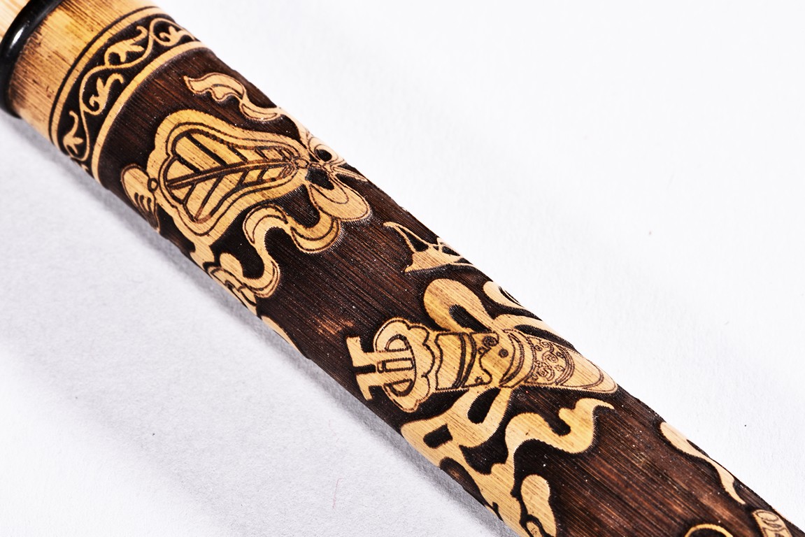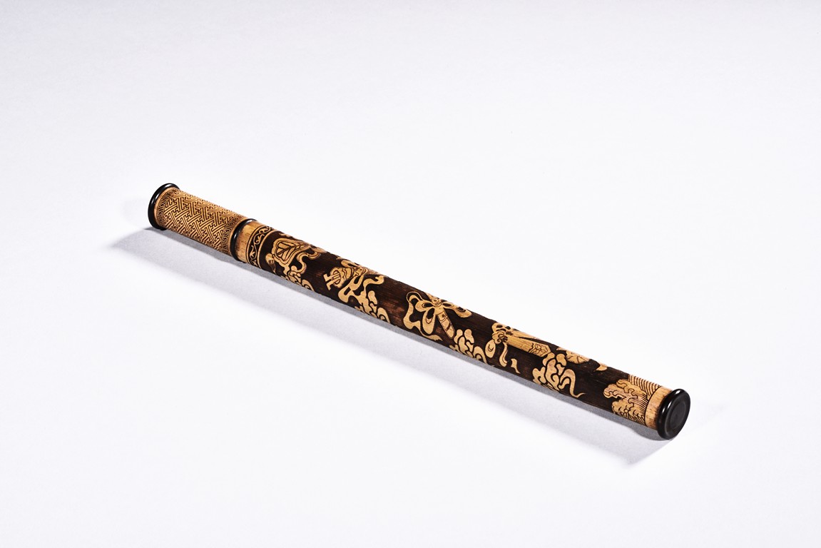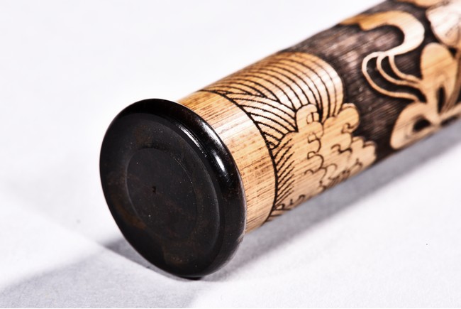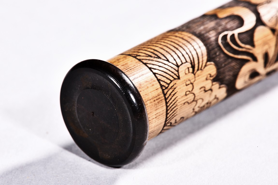 A BAMBOO CARVED BRUSH CASE 福字暗八仙 竹雕小筆筒