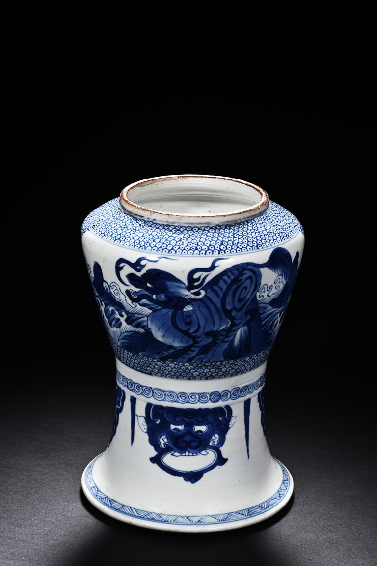 A BLUE AND WHITE VESSEL    青花麒麟海水紋瓶