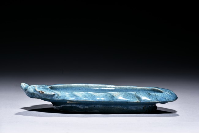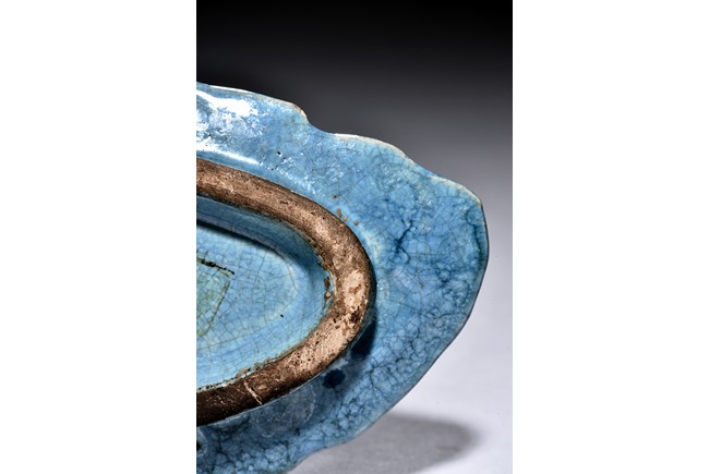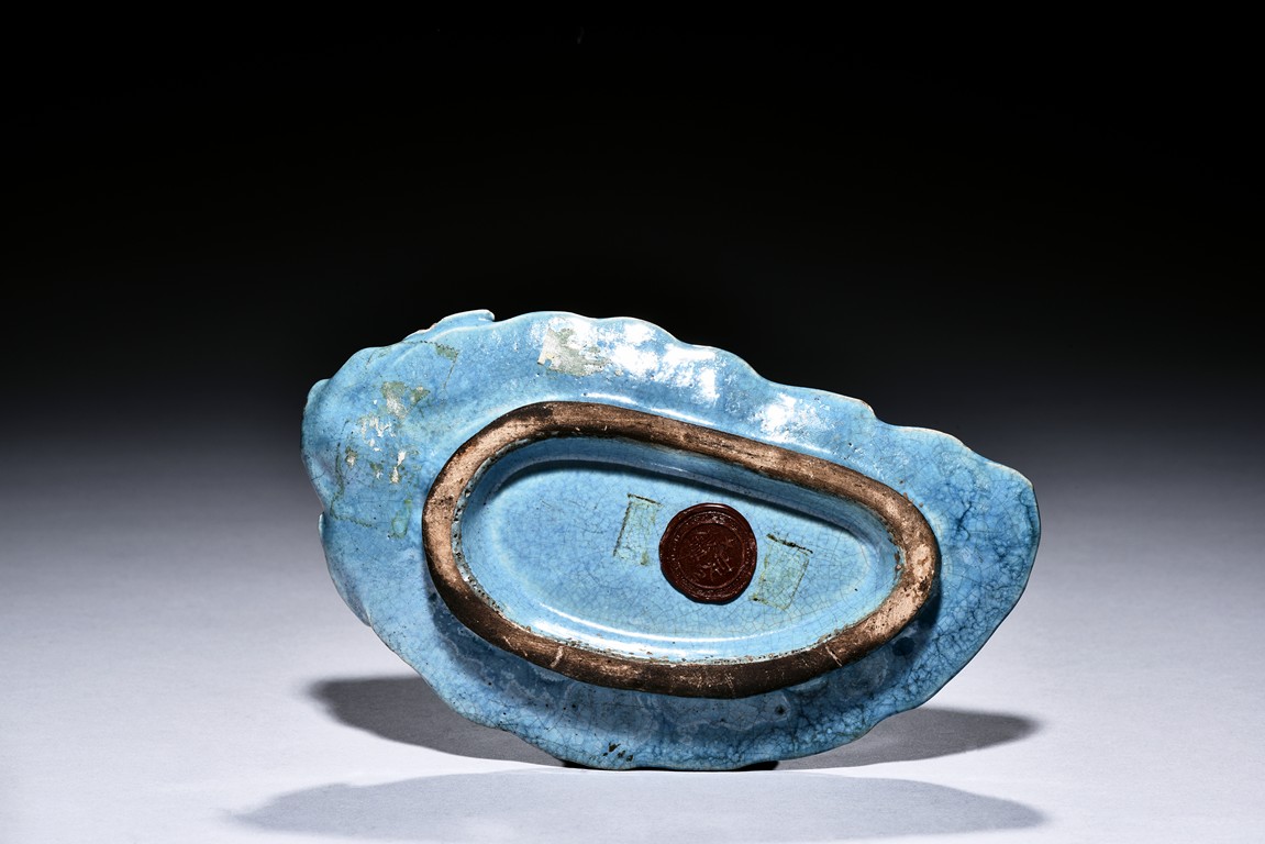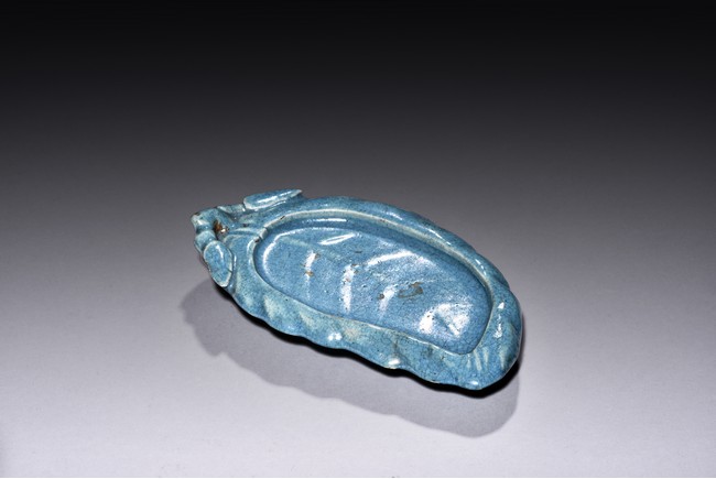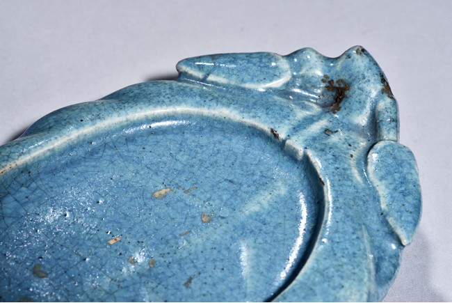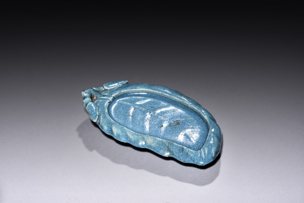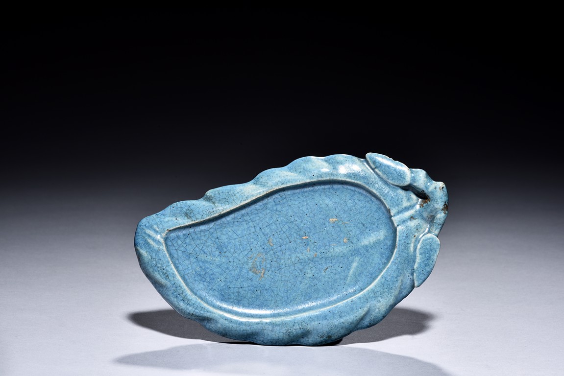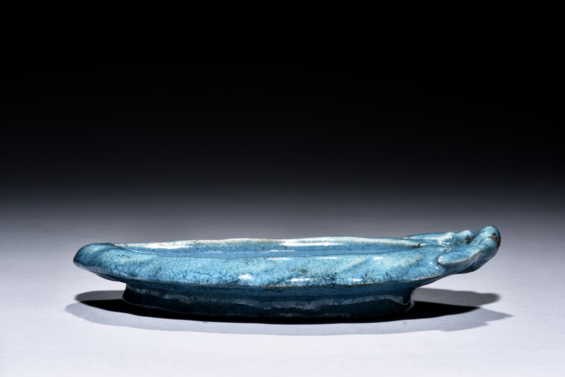 Modelled in the form of upturned leaf form, all covered in blue glaze, the interior slightly shallowed. Republic period.