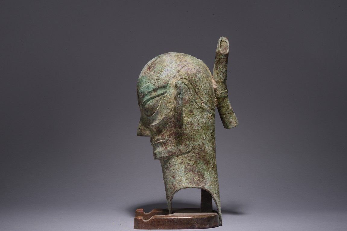 A BRONZE 'SANXINGDUI' HEAD 青銅三星堆人物頭像