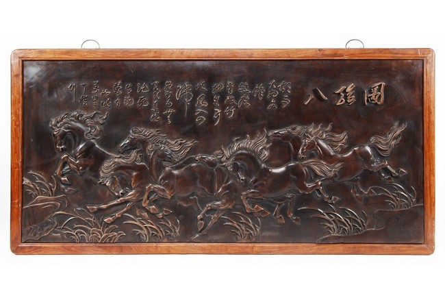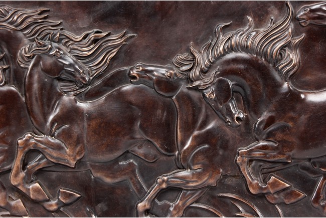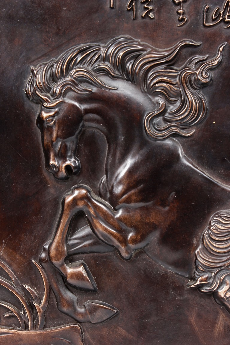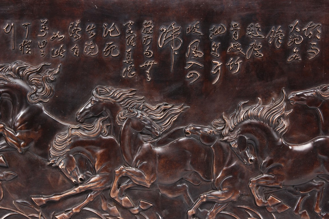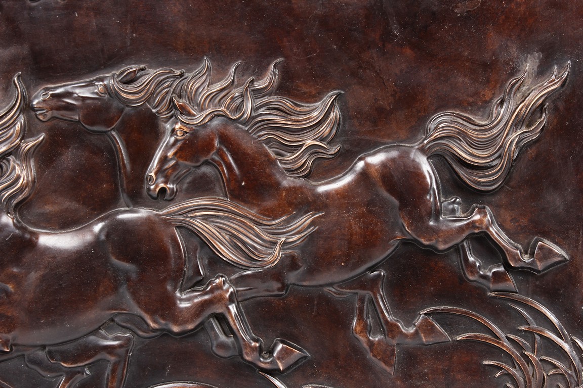 A BRONZE CAST 'EIGHT HORSES' PANEL 駿馬圖銅版畫
