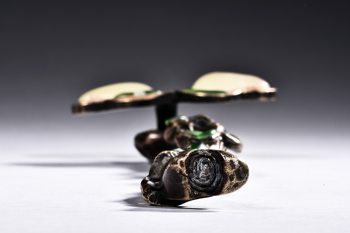 Modelled in the form of a gnarled branch, inlaid with semi-precious gems.