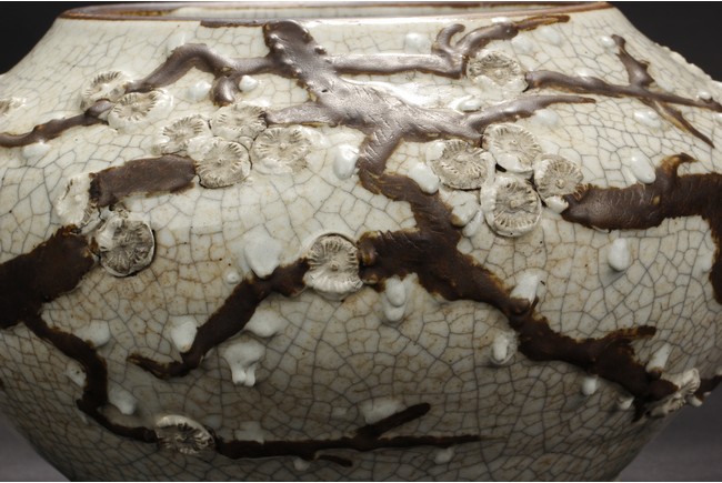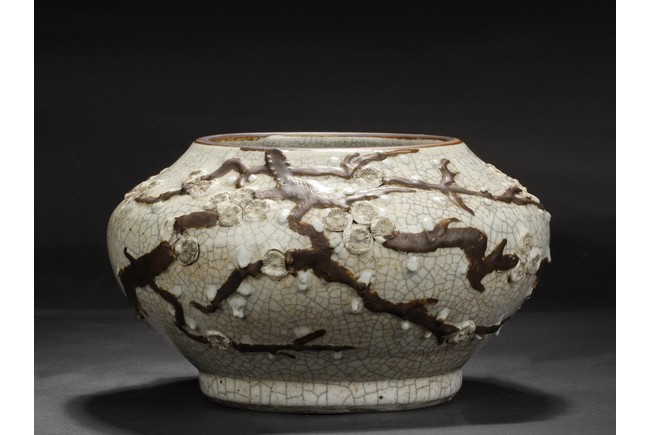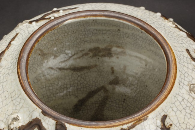 Of globular form, the jar depicts flying dragons amidst clouds, over white glazed crackleware patterns, the bottom bears four character mark 'CHENGHUA'. Qing Dynasty period.
