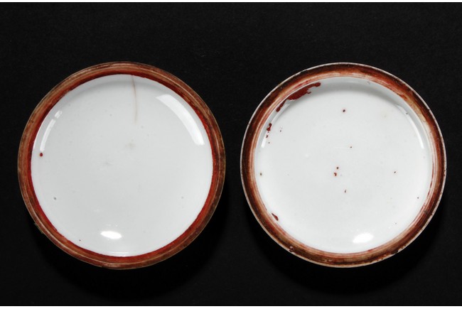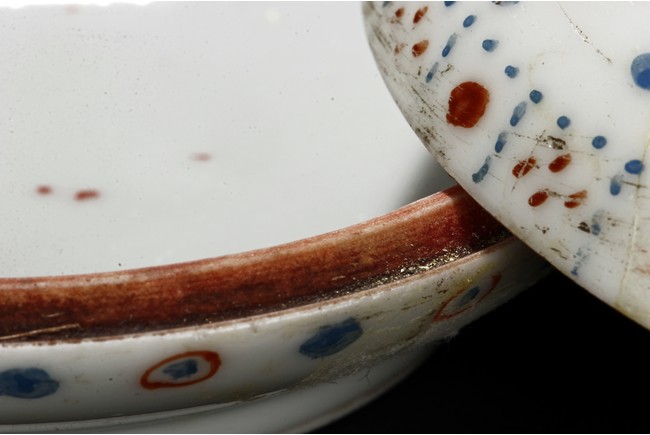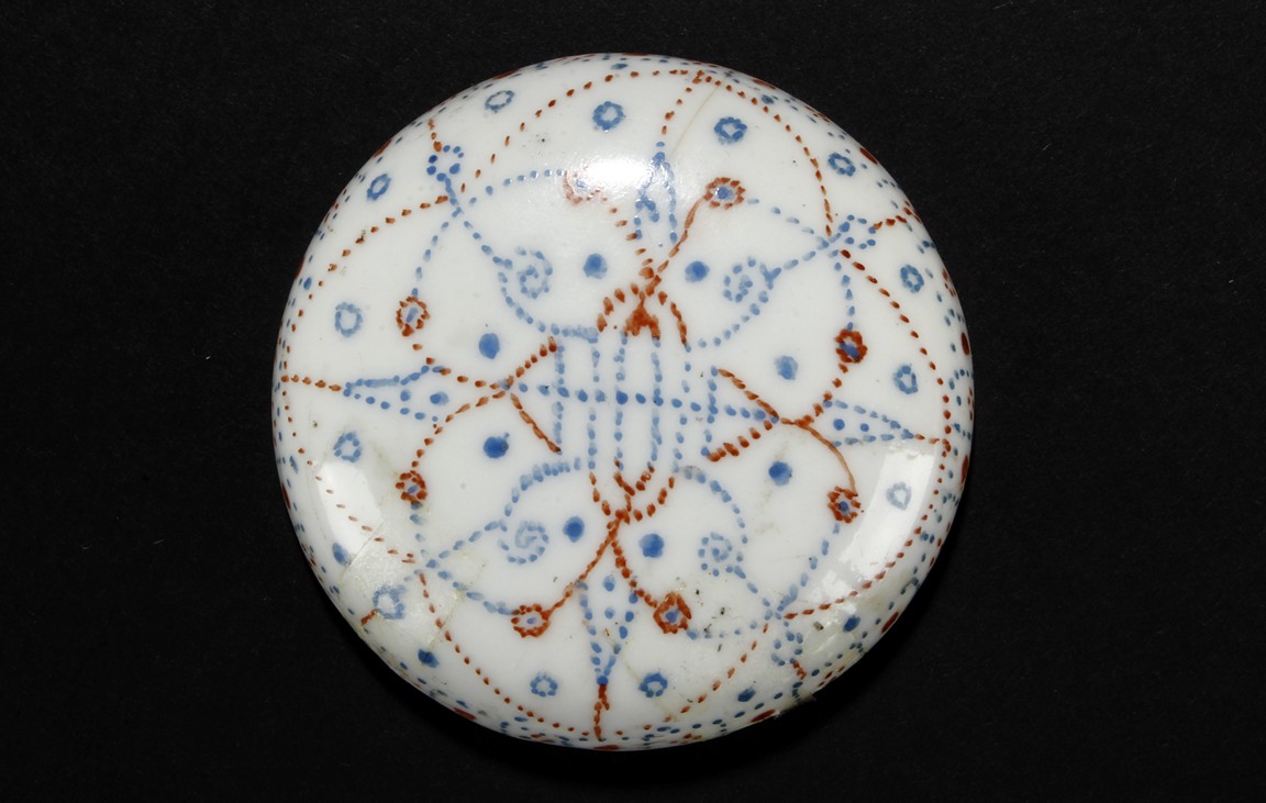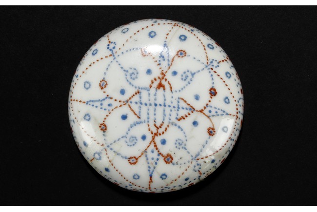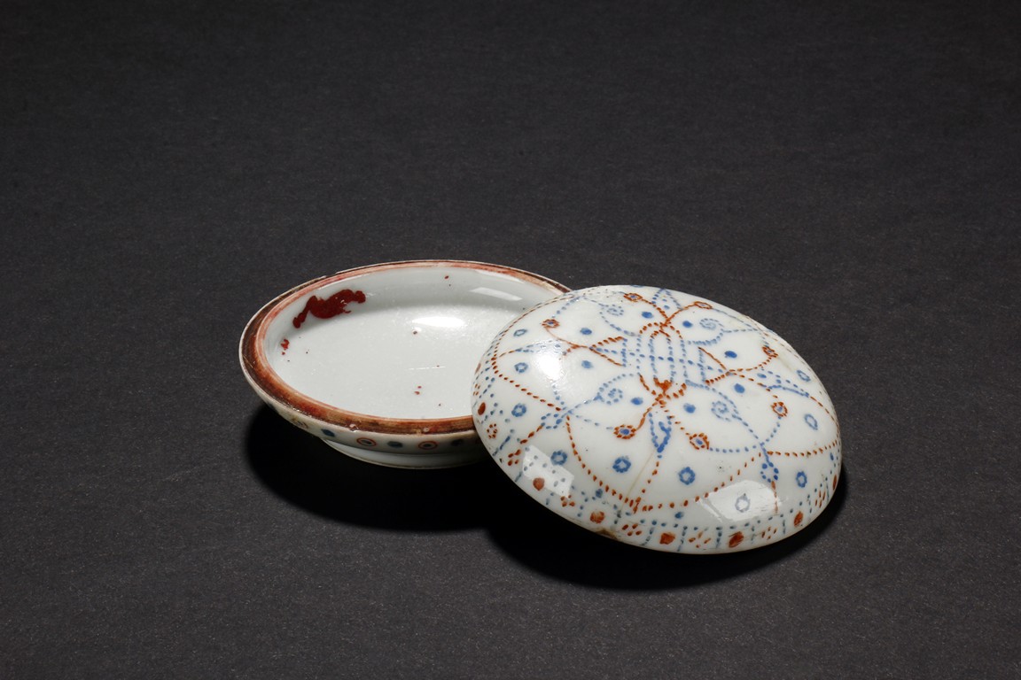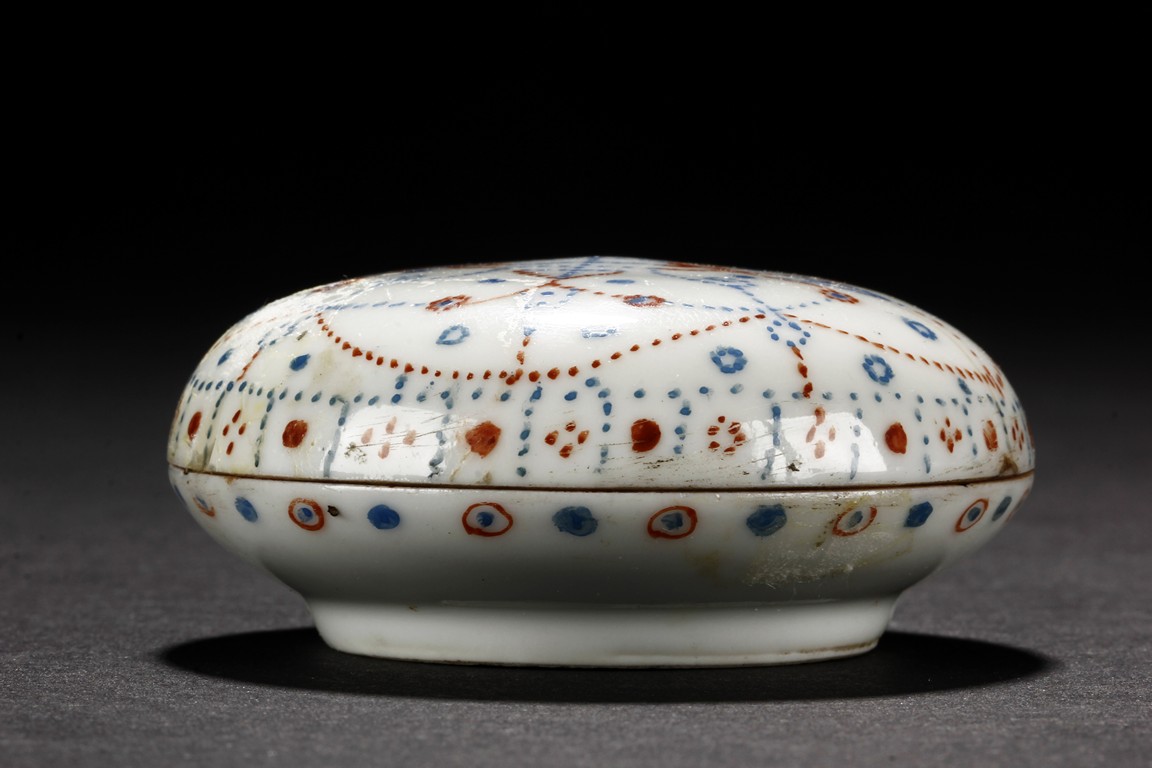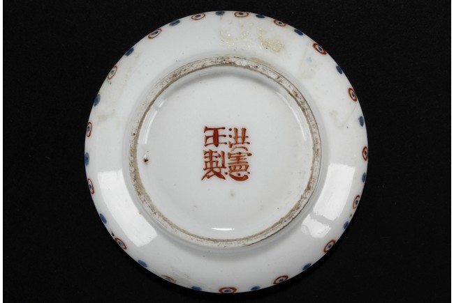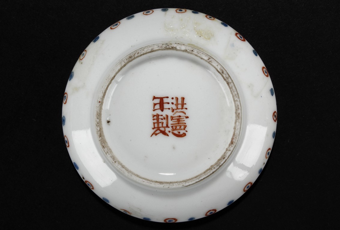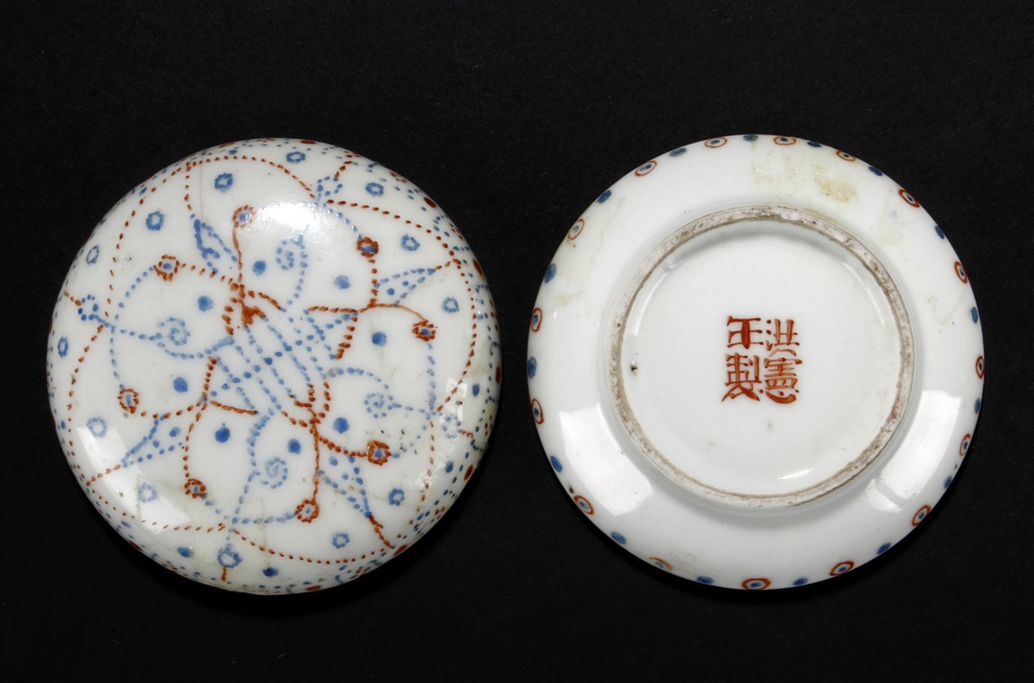 The ink paste is decorated in dotted patterns with red and blue color. The bottom bears a four character 'Hong Xian Nian Zhi' Qing Dynasty period.