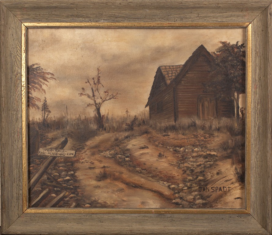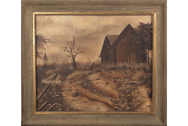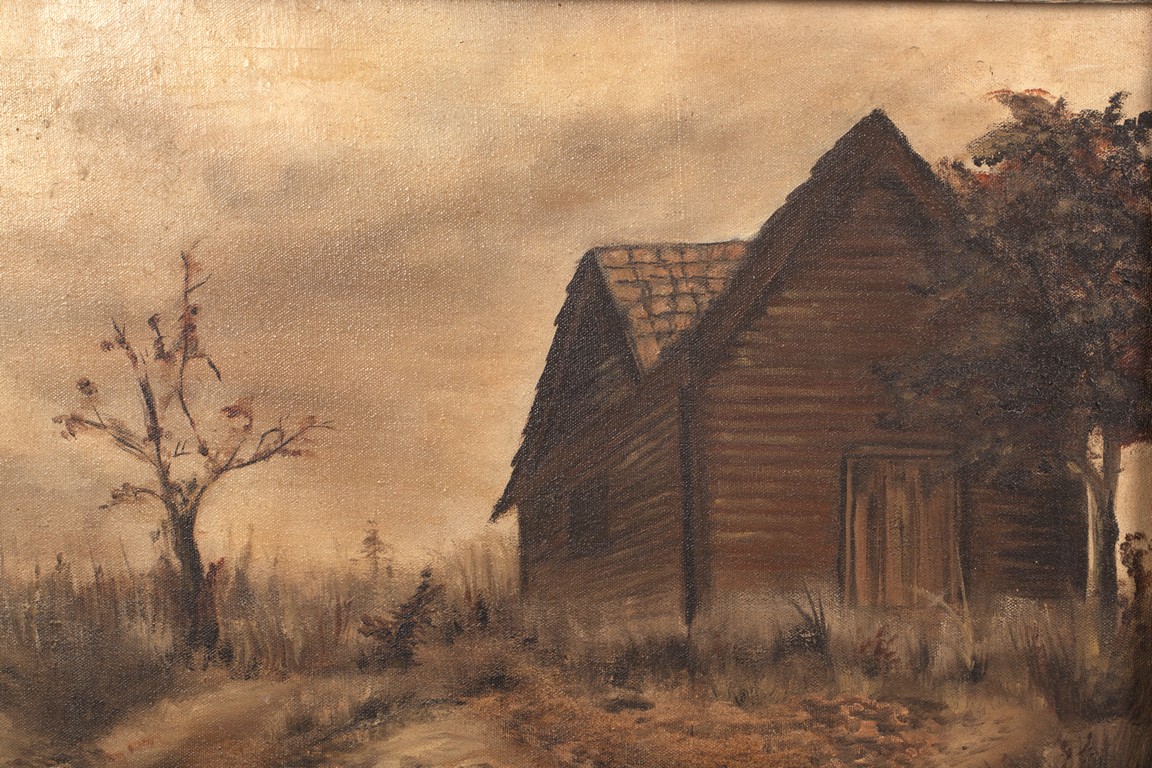 A FRAMED PAINTING OF AN OLD SHACK 小屋油畫