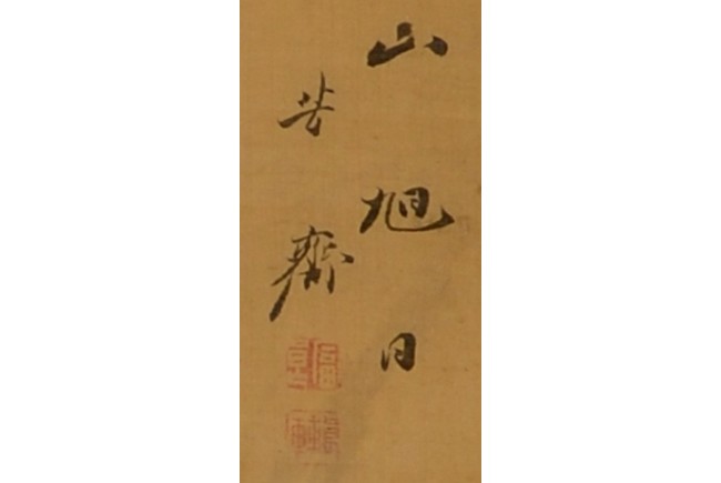 A FRAMED PAINTING ON SILK OF SUNSET SCENE    鏡框絹本海山旭日圖