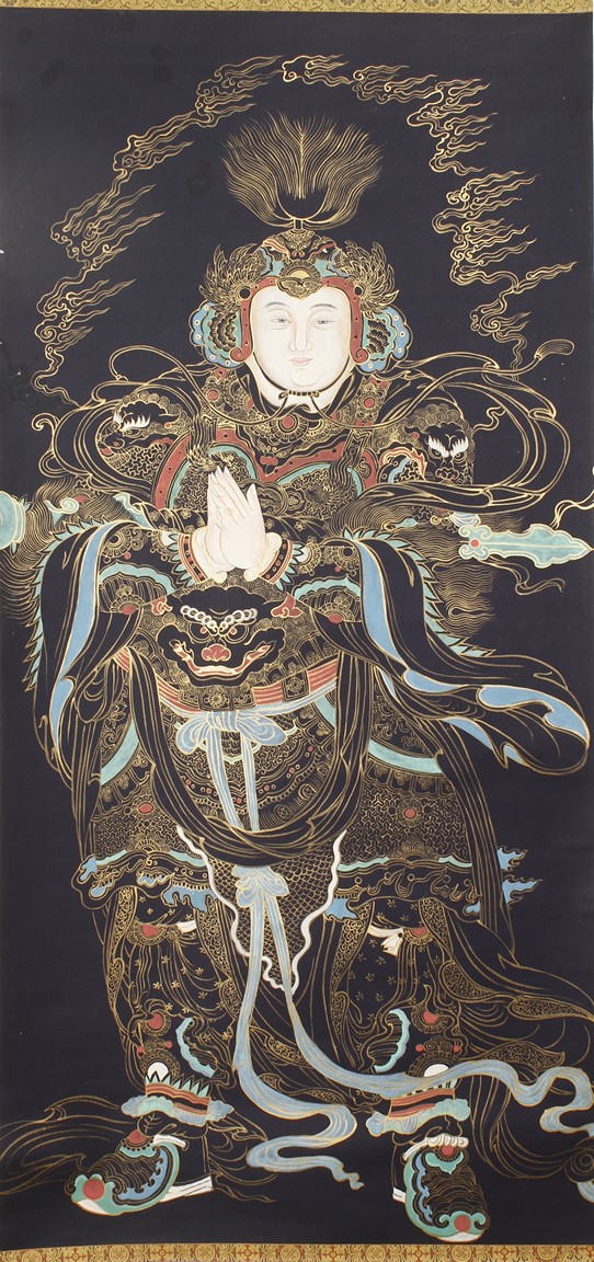 A GILT-PAINTED PAINTING OF GUARDIAN KING 描金韋陀人物畫