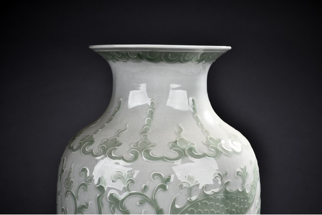 A GREEN GLAZED WHITE GROUND VASE 白底綠釉花瓶