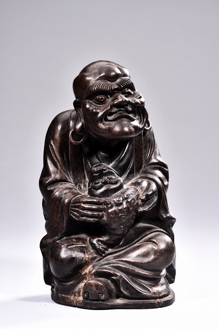 A HARDWOOD FIGURE OF LIU HAI AND TOAD 木雕劉海戲金蟾